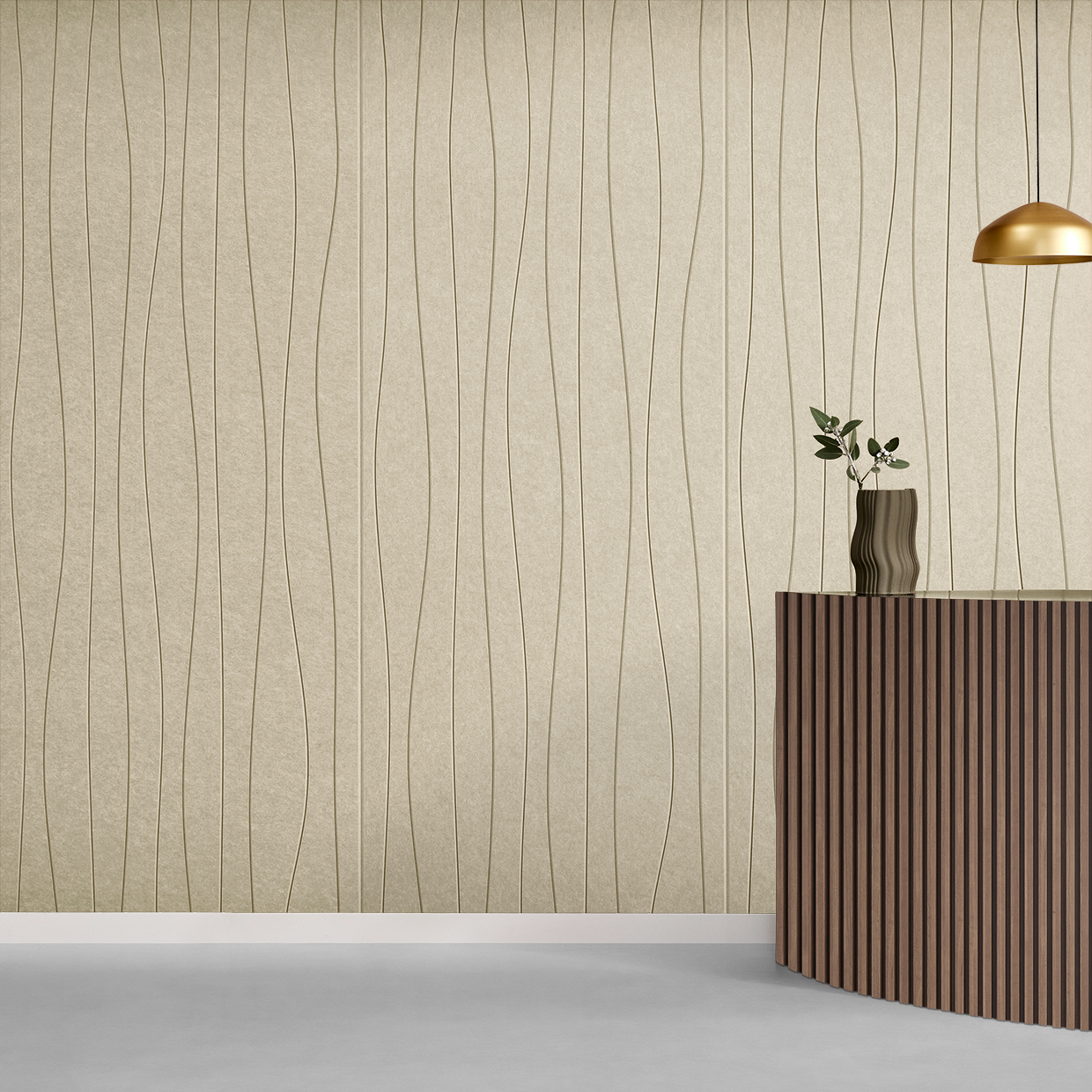 EchoPanel® Current disain on inspireeritud ookeani rannajoonest, mida iseloomustavad vabalt voolavad mustrid. Unikaalse nurga all lõiked loovad kolmemõõtmelise efekti, mis toob loodusest inspireeritud vormide kaudu esile rahuliku tunde.
