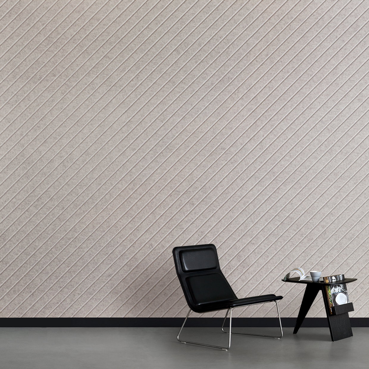 EchoPanel® Meridian akustilistel paneelidel on v-soonega muster, mis on lõigatud täpselt 45-kraadise nurga all. See loob dünaamilise ja graafilise pinnastruktuuri, mis sobib hästi kaasaegsetesse interjööridesse.