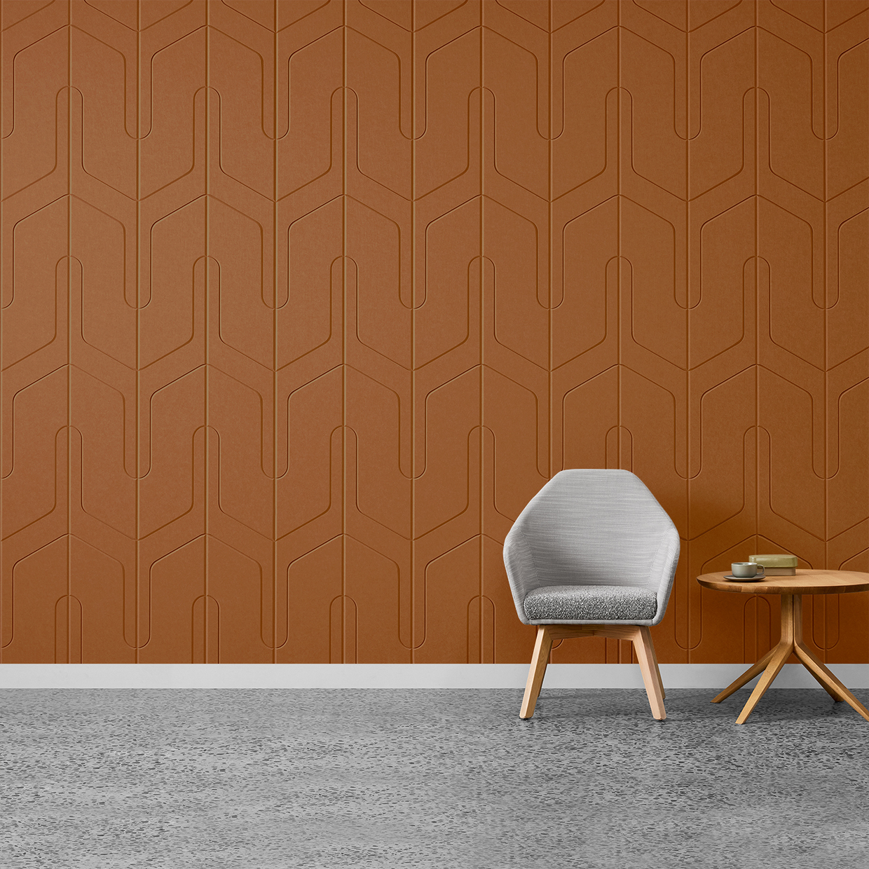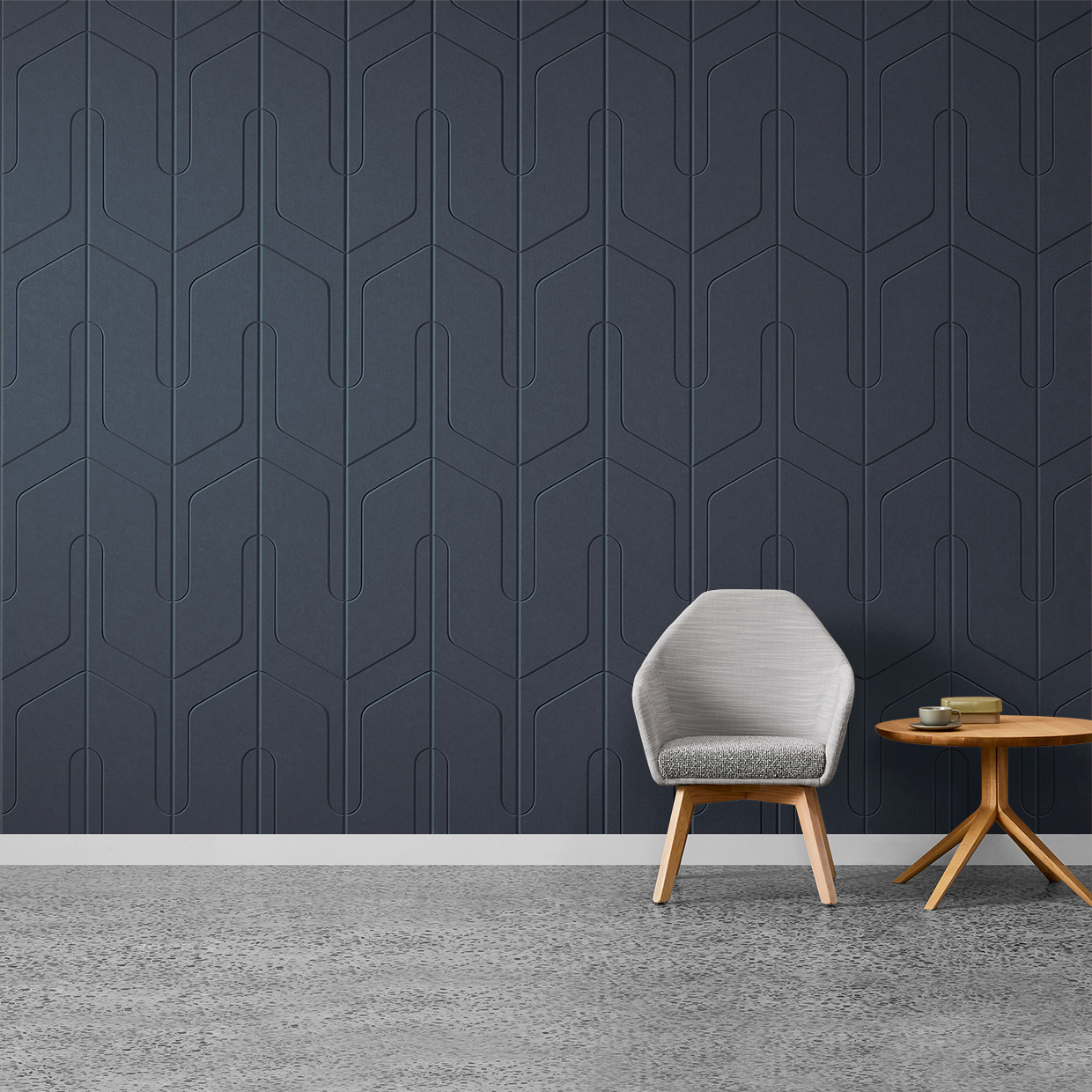 EchoPanel® Parquet disain on inspireeritud Art déco stiilist ning paistab silma suurte geomeetriliste ja omavahel põimuvate mustritega. Erinevate nurkade all ja sirgjooneliselt lõigatud detailide kombinatsioon loob efektse 3D-mulje, mille tulemusel näib muster paneeli pinnalt esile ulatuvat.