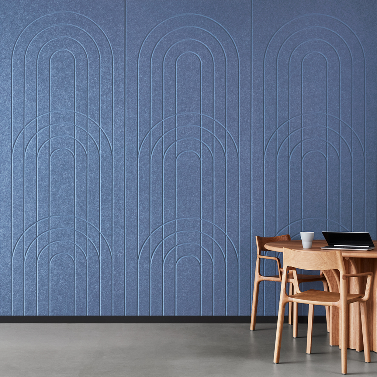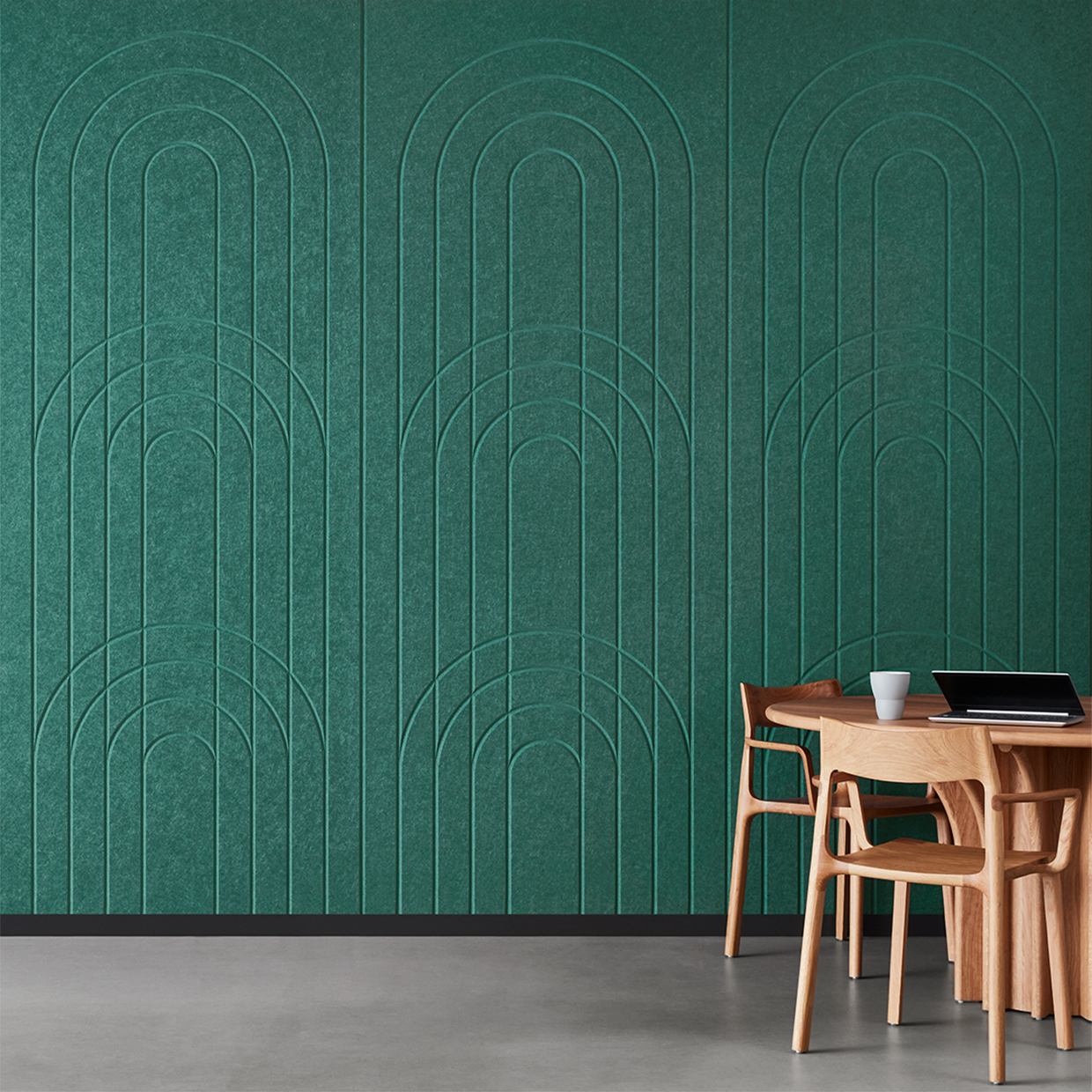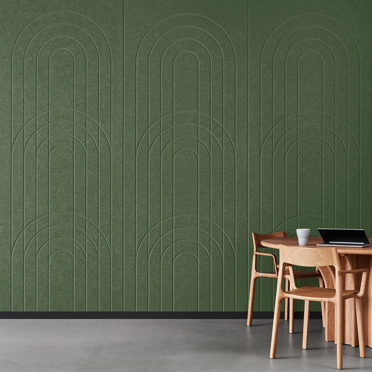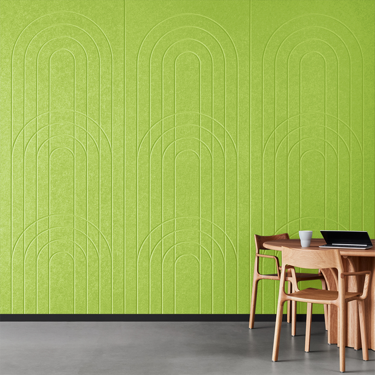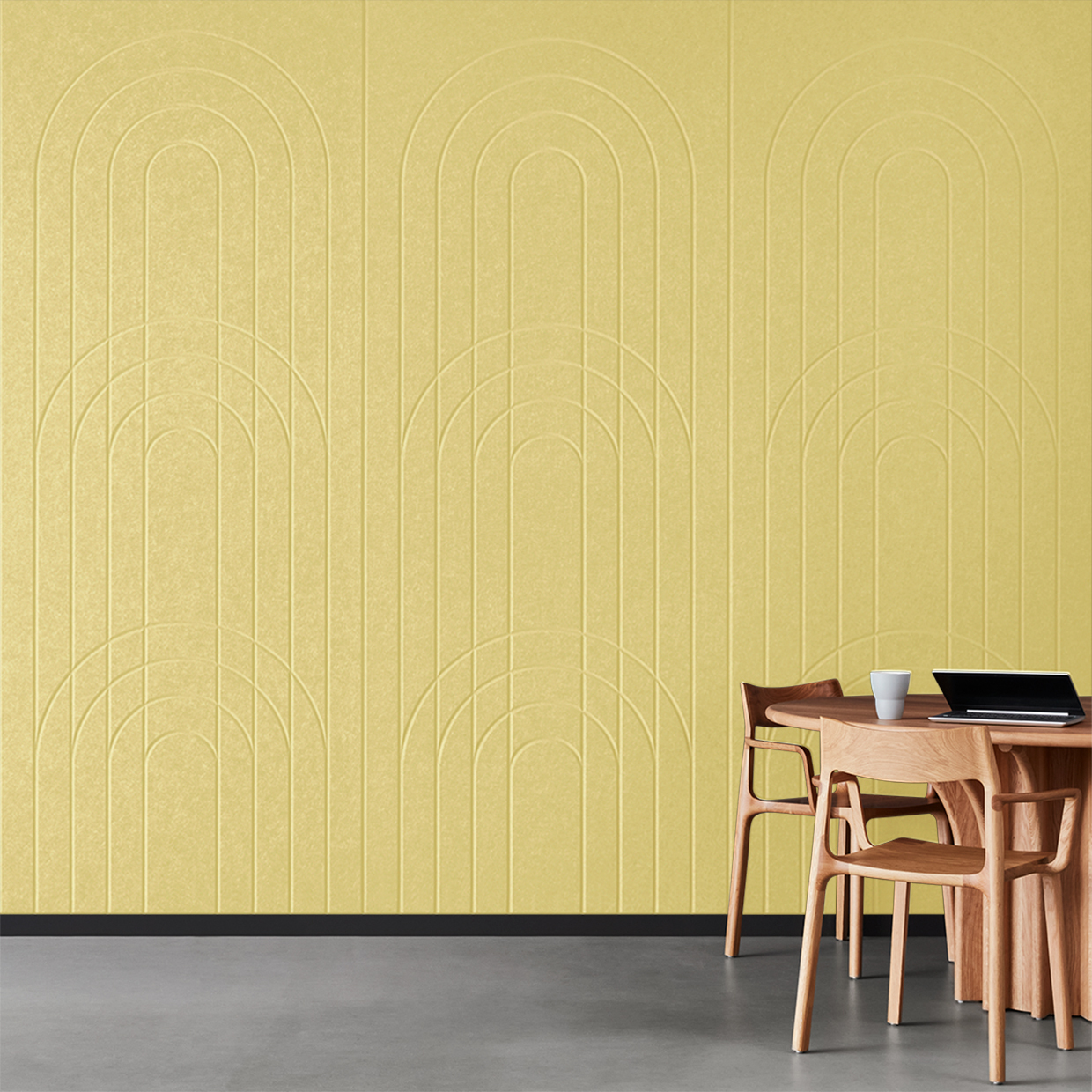 EchoPanel® Empire akustilised paneelid loovad kauni tasakaalu kaarte ja vertikaalsete joonte vahel, tuues interjööri õrna elegantsi.