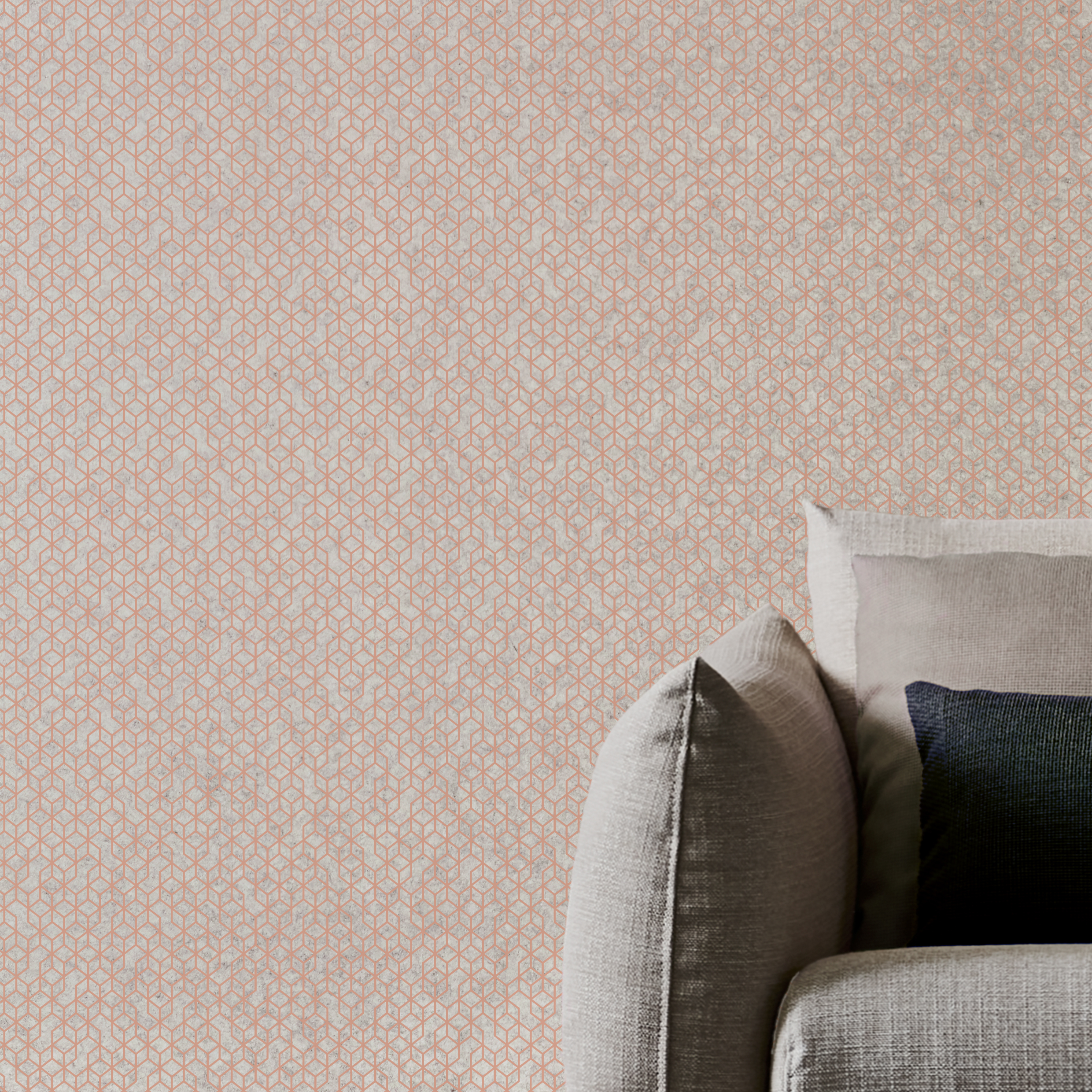 EchoPanel® Astro omavahel põimuv joonemuster meenutab kuusnurkseid ja kuubiku-laadseid kujundeid, mis loovad ruumi modernse ning erilise ilme.
