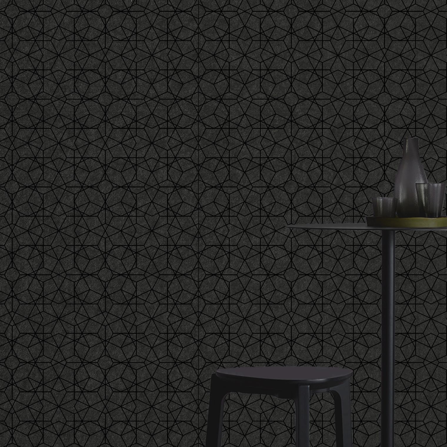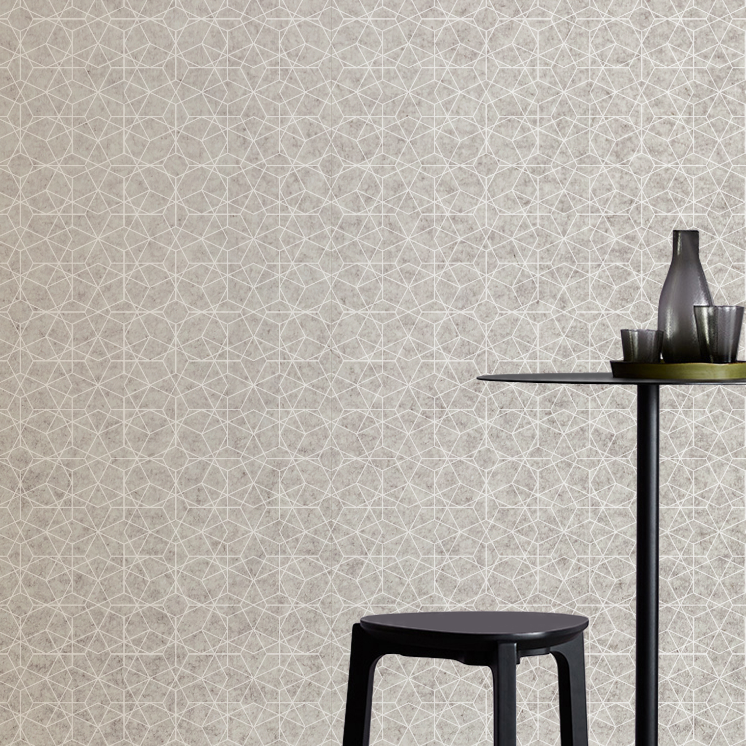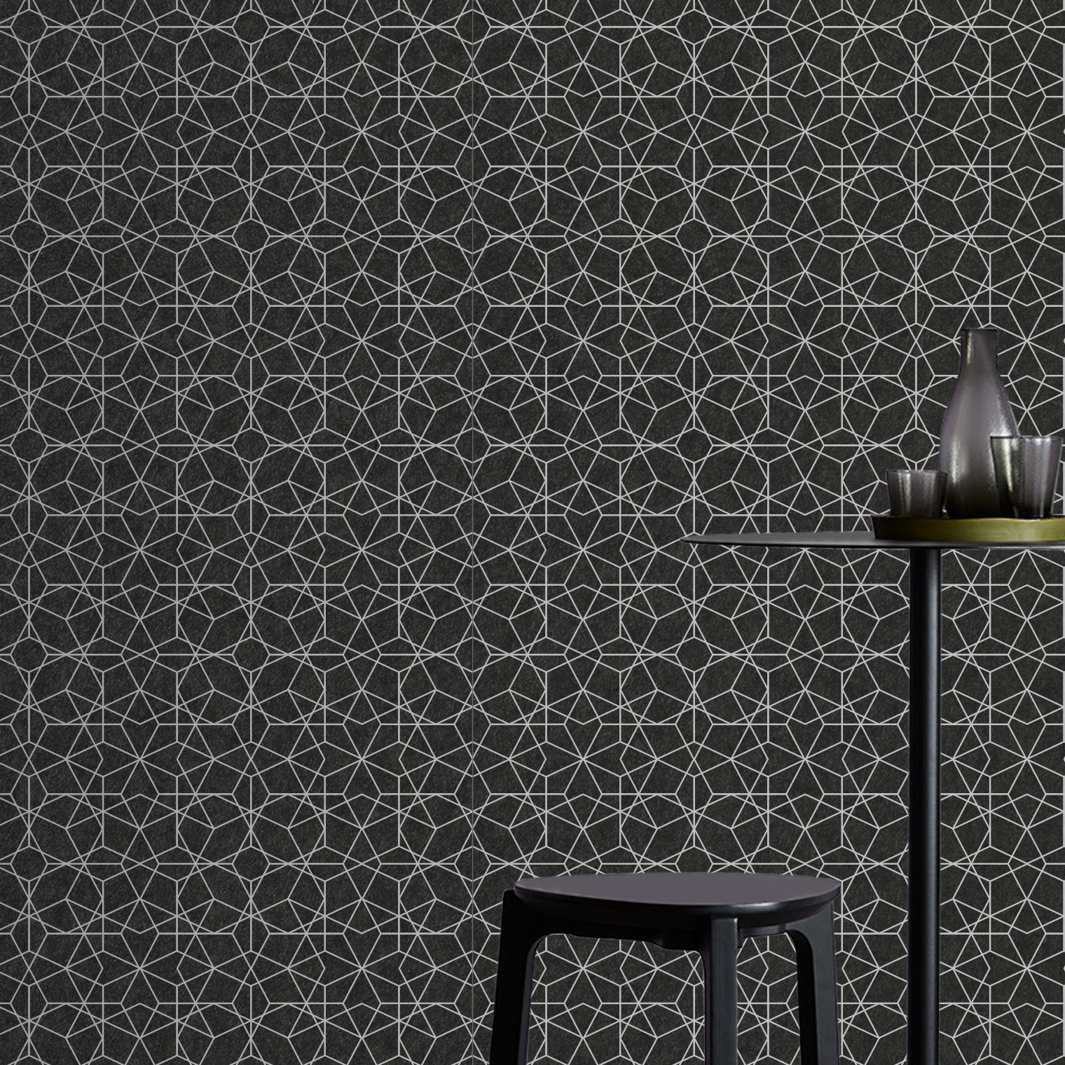 Disainid trükitakse EchoPanel® 12 mm paneelile, mis on valmistatud kuni 80% ulatuses taaskasutatud PET-plastpudelitest. Paneelide 2,8 meetrine pikkus võimaldab paigaldada need paneel paneeli kõrvale, et saavutada pidev ja katkestusteta muster üle kogu seina.